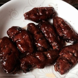 五分钟后大火收汁装盘,打工告成!入味好吃的可乐鸡翅就做好了!一口气吃了八个,不能被老公发现吃独食!呵呵!