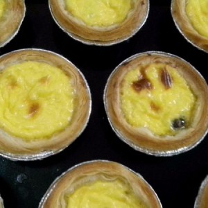 蛋挞液滤网过滤后倒入蛋挞皮内,8分满即可。