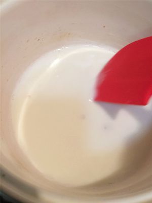 锅中倒入牛奶2煮沸后 将吉利丁片加入 搅拌到融化