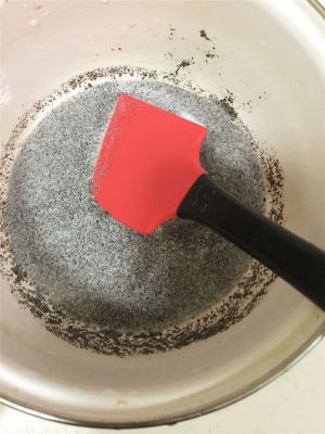 倒入大概20ML的牛奶液将饼干碎搅抖到粘稠状态