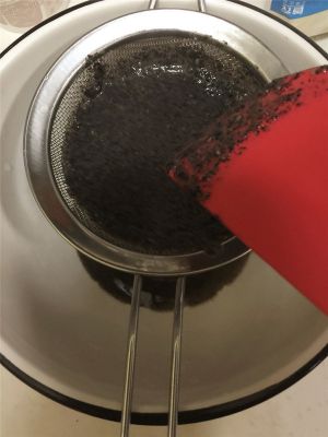 将黑芝麻牛奶 过一下筛 用力的在筛网上刮一刮 好让黑芝麻糊更加细腻