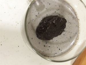 把黑芝麻粉和牛奶1混合 主入锅中煮开后 把泡软的吉利丁片加进去 搅拌到融化