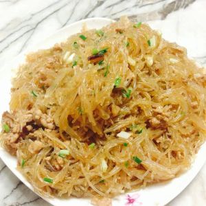 油多 热锅放粉丝 !放盐、酱油、快出锅钱放味精、葱末