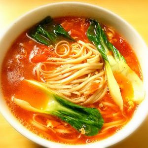 加入面条,开始煮两三分钟就可以出锅了,有青菜可以待快出锅时加入青菜