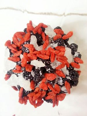 放入冰糖,枸杞(我放的是老冰糖,据说更好一些。)