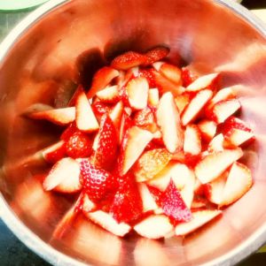 将新鲜的草莓切成4小块