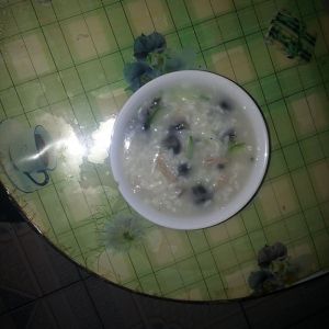 然后放入葱 青菜丝 盐 和糖 。小火慢煮