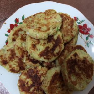 分成小块按压成饼状用饼铛煎至两面金黄。