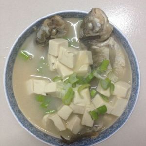 将锅内油和葱姜弃之 加温水(为了防止肉紧着 味道大跌)加料酒 一点生抽 八角 炖鱼料 葱段 大火烧开 去浮沫 转文火 炖半小时 放盐少许 加卤水豆腐 炖十五分钟 起锅前 撒白胡椒粉 乳白色鲫鱼汤立即呈现!