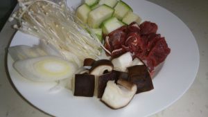 石锅烧热后放少许的油,牛肉炒到变色后放入开水