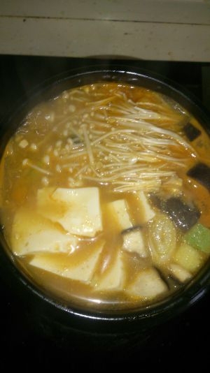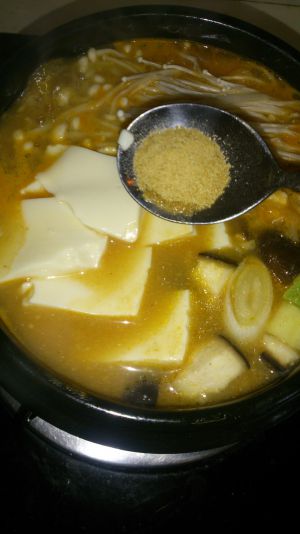 黄豆芽,嫩豆腐。外面吃到的都是老豆腐,我不喜欢所以我每次都是用嫩豆腐。当然自己喜欢也可以加别的东西。