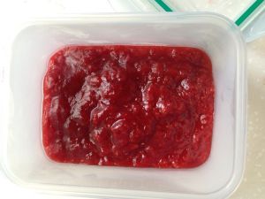将熬好的果酱放入无水无油的容器内,放凉,再放入冰箱即可。