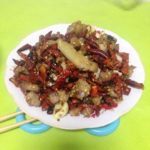注意:辣椒时间不能炒长,要不然会苦。另外,过程中不能加水,这样才能保证鸡丁劲道。
