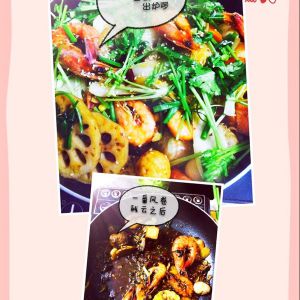 锅里放入比平时炒菜多三四倍的油(油多点好吃些),油热后放入一小撮花椒,适量干辣椒,生姜,大蒜,大葱,煸出香味后放入火锅底料(可以根据自己选择放多少),等火锅底料融化后就放入提前整理好的虾子。