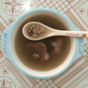 排骨洗干净先飞水放两片姜【冷水下锅煮两分钟】然后捞起来洗干净备用,五指毛桃,赤小豆,薏米,白茅根洗干净备用。