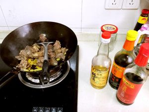 加适量料酒、生抽、酱油和盐,翻炒均匀