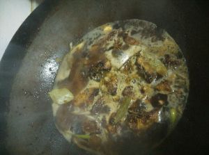 油化了,放入鸡脖子翻炒均匀!