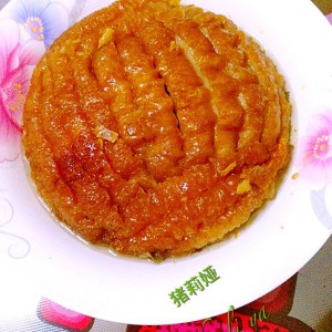 蒸2-3小时,取干净碟子将扣肉反倒过来,再蒸大约10分钟左右,我喜欢皮带点Q弹口感就蒸时间短些,想吃皮软绵的,加蒸5分钟就好.。