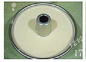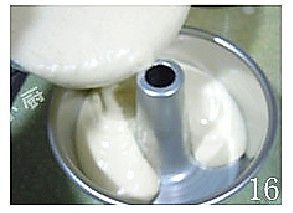 将拌好的蛋糕糊倒入中空的戚风模中。