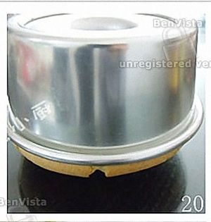用两手拿住模子,拇指紧紧压住中心圆筒部分,在桌上轻轻敲两下。