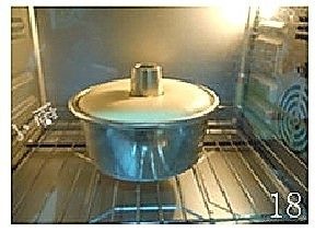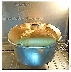烘烤40分钟后,用竹签斜插入蛋糕中心内部,只要拔出来的竹签没有沾黏面糊就表示烘烤完成。
