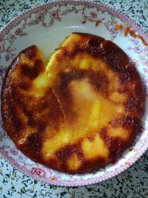 蛋黄里放六勺牛奶(可多放一两勺,喝汤用的勺子),面粉三勺满满的,糖两勺,搅拌匀后放一半蛋清,记住是上下拌匀,在放剩下那半继续上下拌匀,把锅刷油,蜂蜜加热三分钟。
