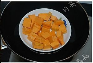 老南瓜去皮切成小块,上锅隔水蒸熟