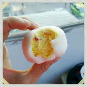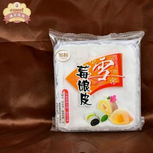 在网上可以买到这样子的雪媚娘皮,味道不错,甜甜的,把刚才做好的慕斯泥包进来