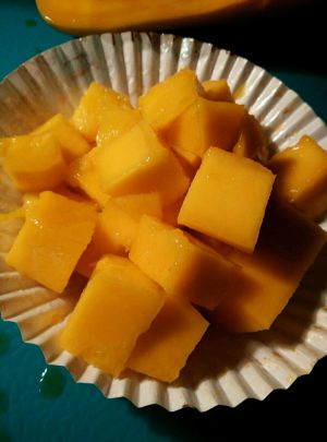 准备芒果一个,我用的是台湾农芒,因为这种小芒果颜色鲜艳并且有浓郁的芒果香味,甜度也很不错,打成泥或者做甜品都很不错