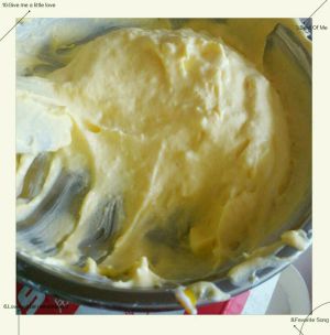 将打好的芒果泥加入打发的奶油当中搅拌均匀