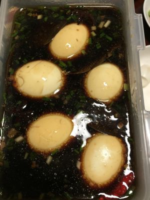 把剥壳鸡蛋放入保鲜盒,盖好放入冰箱
