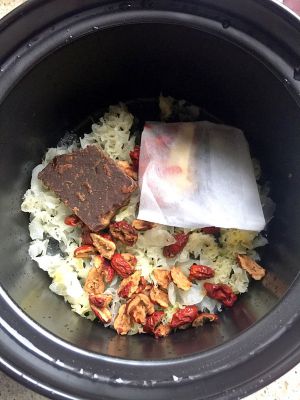 用大火将锅内烧开,尔后转小火,大约三小时后,银耳便能软糯!