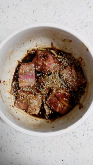 排骨用葱花,姜,酱料腌