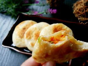 面团分等份,包入馅料,用平底锅煎至两面金黄
