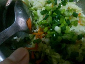 椰菜切丝后用盐腌20分去水
