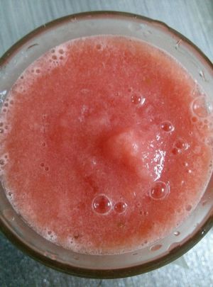 用手持搅拌棒搅拌成西瓜汁即可,冰凉冰凉的,老解暑啦