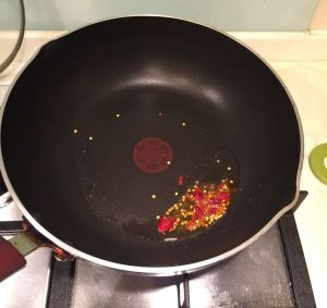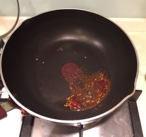 炸好的调料浇在蒜末上,搅拌均匀即可食用。