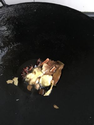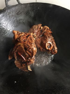 放冰糖一小块,醋,料酒,老抽,让骨头均匀上色。