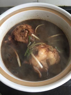 煮开后倒入砂锅,加葱。大火煮开转小火,大约焖2小时左右。