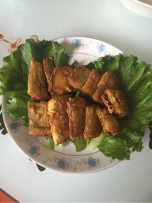 把带鱼洗净,放入葱姜蒜,辣椒,生抽,鱼鼓油,盐,糖少许,料酒,搅拌均匀,盖起来腌制30分钟