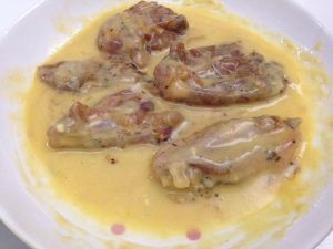 把腌制好的鸡块放进去滚一圈沾满面糊。