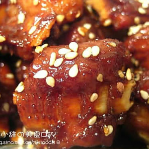 倒出多余的油,把锅洗净,再放少量水,热后,放一盐、醋两勺、白糖5勺、红糖2勺,等煮冒泡后,放入排骨一起煮,要不停的铲,在铲的过程中尝尝味道,适当调整适合自己的口味,等完全快干的时候,撒入芝麻,即可出锅!