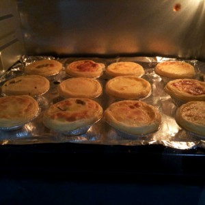 快烤好的样子,蛋挞皮已经崛起啦!!还在担心它会不会粘在锡纸托上,蛋挞皮下面已经刷了秘密武器黄油!是不会粘哒!