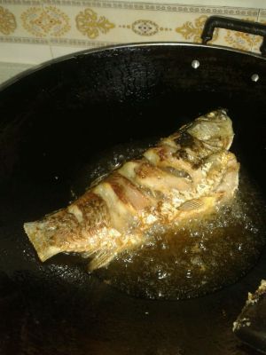 热锅倒油,放入鲫鱼煎至两面金黄,捞出控油。