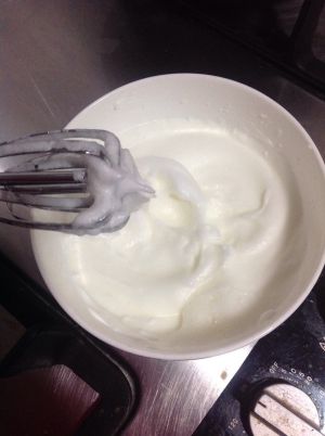 蛋白用电动打蛋器高速打出大气泡后分2次倒入白糖打发,等出现纹路后再低速打2分钟左右蛋白就打的很好了,提起打蛋器出现硬硬的尖角即可。ps……50克糖味道偏淡,适合抹果酱奶油,如果单独蛋糕卷吃的亲请放60克糖,味道刚刚好呦!