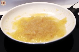 当酱料呈现出如图所示的金黄色,底部出现一点焦皮时即可关火,注意不要煮糊了。