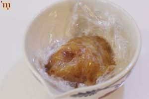 把酱料倒出放在一旁待其冷却备用。上方可盖一层保鲜膜防止结干皮。密封好后可放在冰箱保鲜冷藏室长达2个礼拜,在需要制作菠萝挞时再拿出使用。