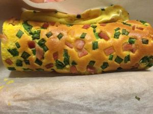 最后一步,切块,两头再刷上点沙拉酱和肉松就完成拉 so easy,可以直接秒杀蛋糕店的肉松卷了,但是更加干净卫生,当一份美美的早餐或者下午茶点心再好不过了