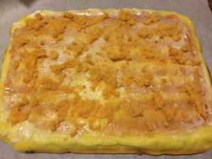 等完全冷却之后,刷上沙拉酱和肉松,我的沙拉酱刷的比较少,多刷一些口感会更湿润好吃
