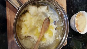 我因为提前晚上煮好土豆,所以第二天早上是把黄油化了以后拌匀的